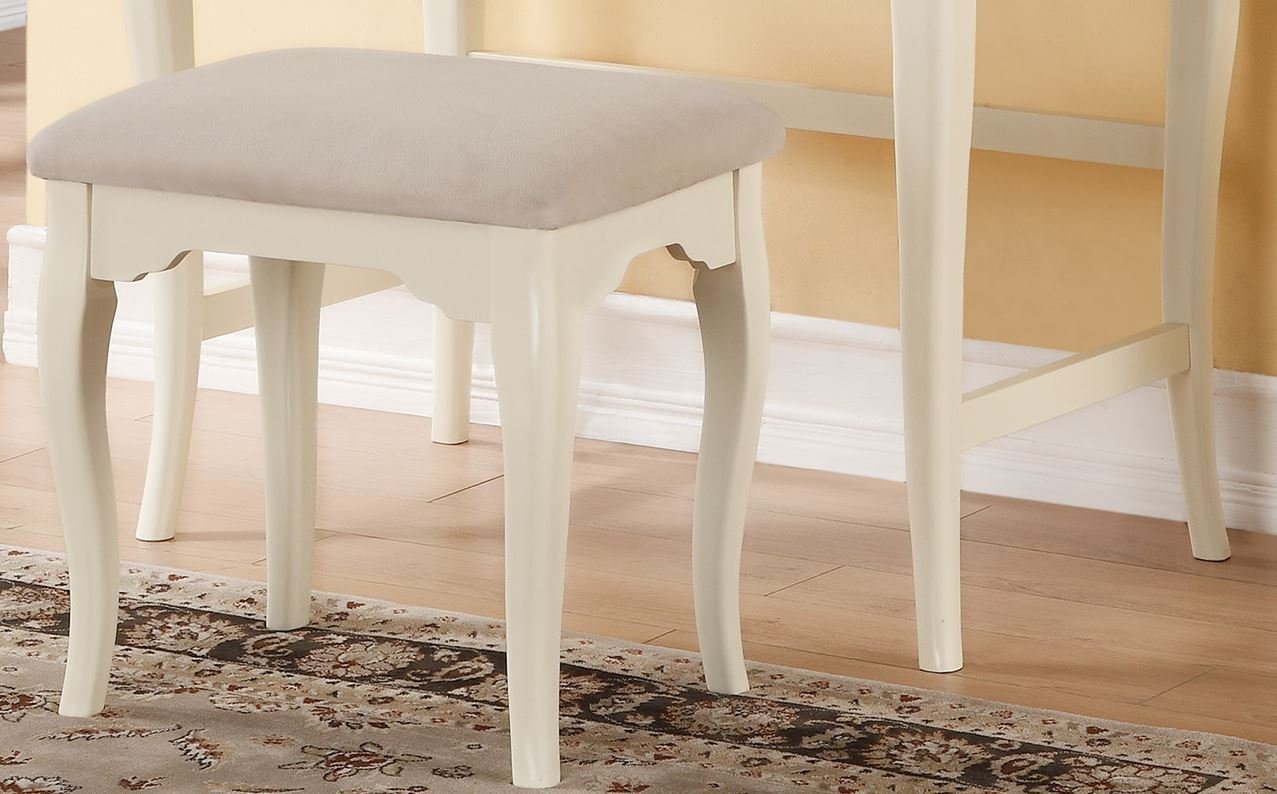 A Mirror Vanity Paired With An Acrylic Chair With A Fabric