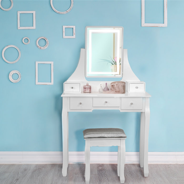 Amazon Com Vanity Tri Fold Mirror Table Makeup Station