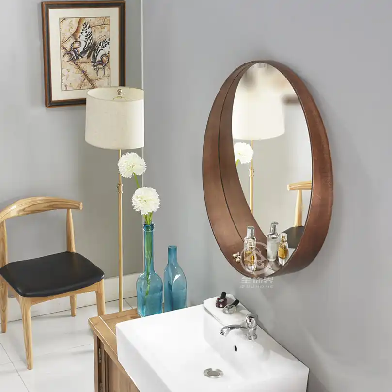 Round Wall Mirror Glass Console Makeup Vanity Mirror Wall Decorative Mirrored Art Bathroom Mirror