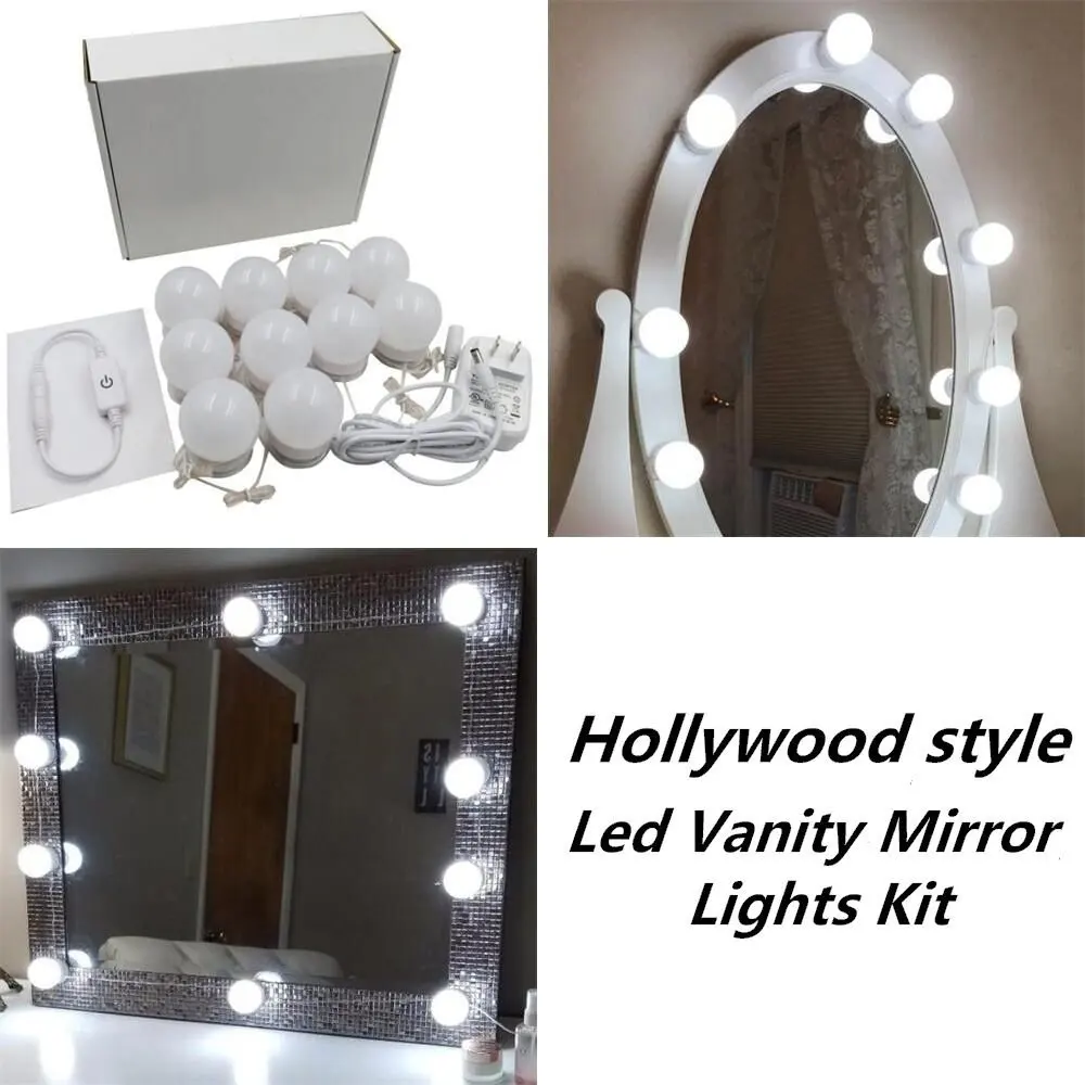 Us 16 09 30 Off Makeup Vanity Mirror Light 12v 6 10 12 Bulbs Kit For Dressing Table Hollywood Mirror Wall Lamp Bulb Chain Stepless Dimmable In Wall