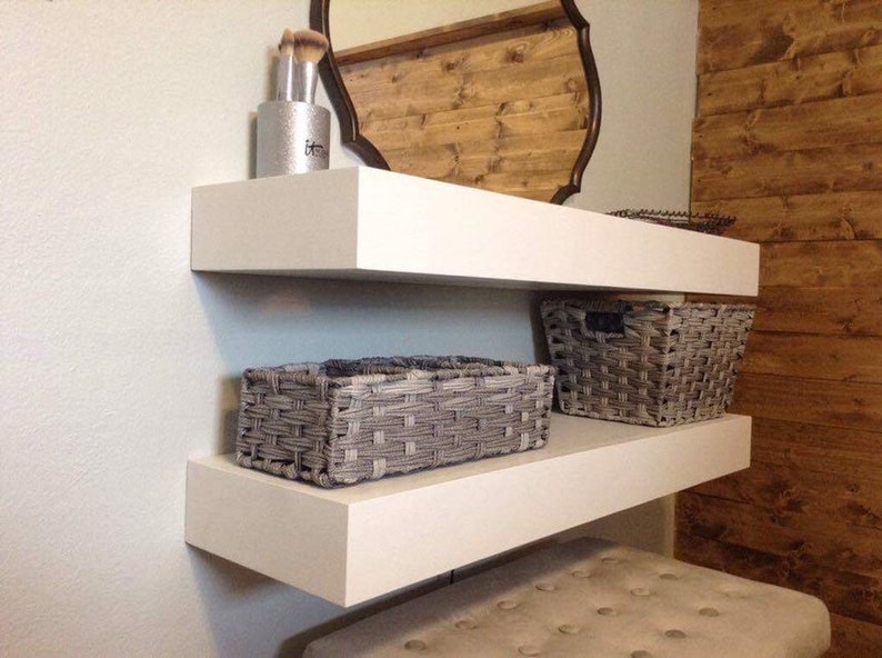 White Floating Shelves Makeup Vanity Floating Shelf Wall Shelves Bathroom Shelves Chunky Shelves Hanging Shelf Wood Shelves