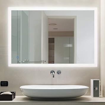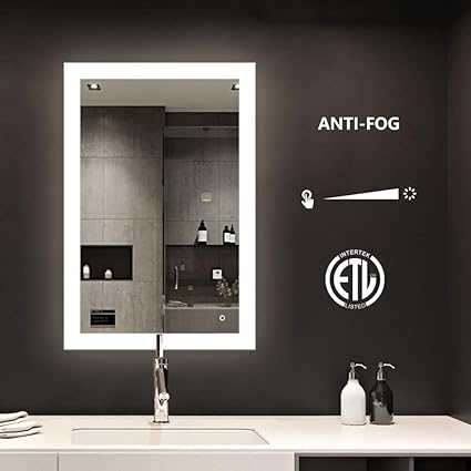 Ai Lighting Bathroom Mirror With Lights Large Dimmable Led Makeup Vanity Mirror Wall Mount Mirror With Touch Button Horizontal Vertical Anti Fog