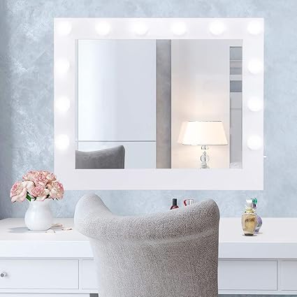 White Hollywood Makeup Vanity Mirror With 12 Dimmable Light Bulbs Natural Daylight Lighting Wall Mirror With Detachable Base Led Lighted Cosmetic