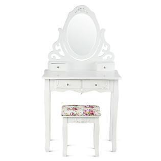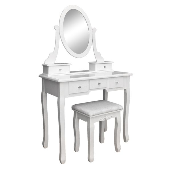 Makeup Vanity Table Set Women Girls Oval Mirror Dressing