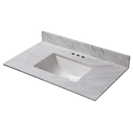 Ryvyr Maut31rwt 31 Inch Vanity Top With Backsplash For Cum198rwt White Carrara Marble