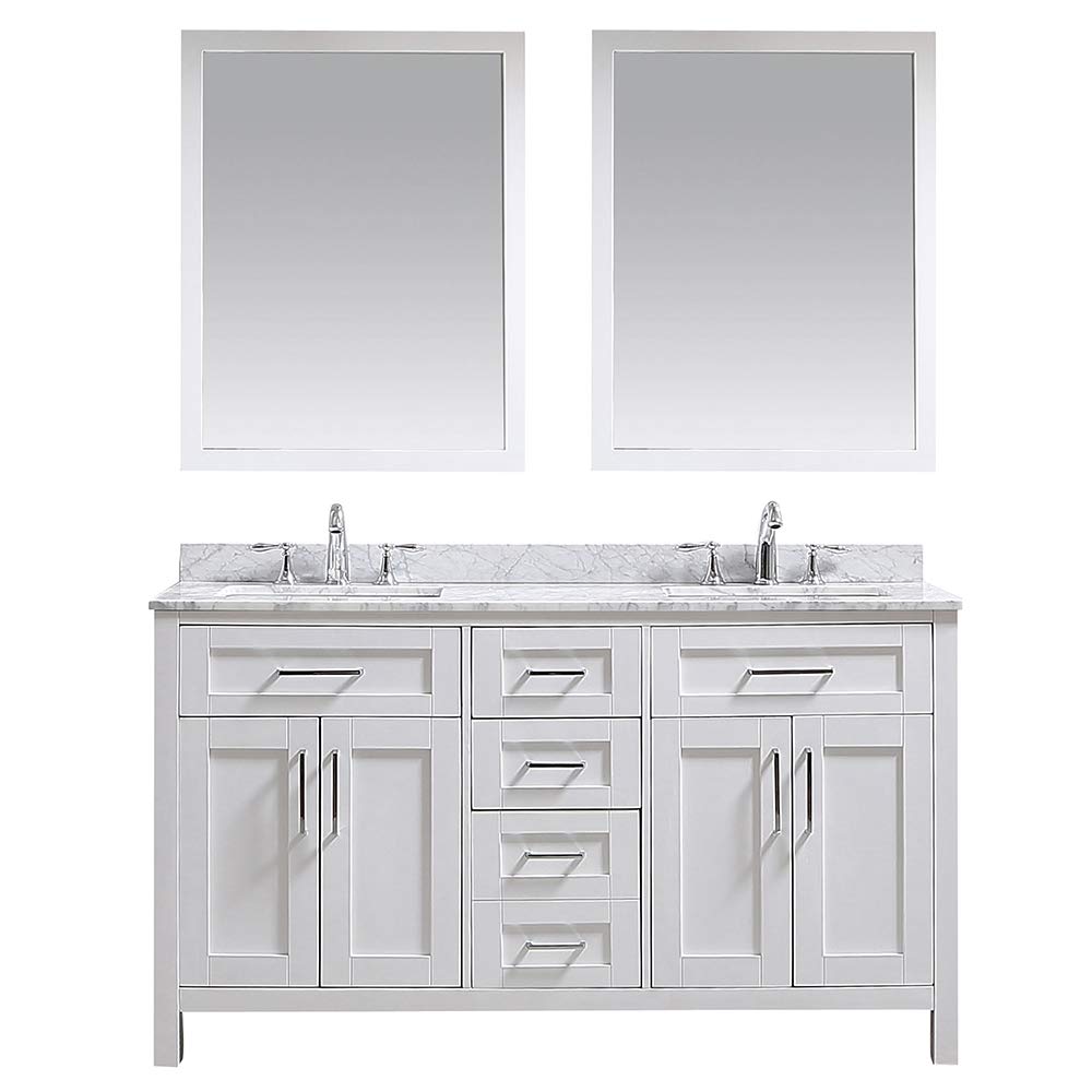 Ove Decors White Maya 60 Double Vanity With Marble Top Backsplash And Two Mirrors 60 Inches