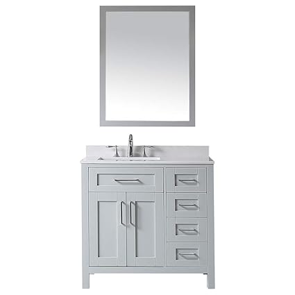 Ove Decors Maya 36 Dove Grey Single Sink Vanity With Marble Top Backsplash And Mirror 36 Inches