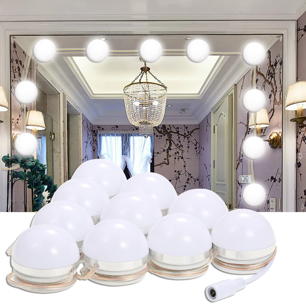 Makeup Mirror Vanity Led Light Bulbs Kit 12v Usb Plug Cosmetic Lighted Beauty Mirror Lamps Brightness Adjustment 2 6 10 14 Bulbs