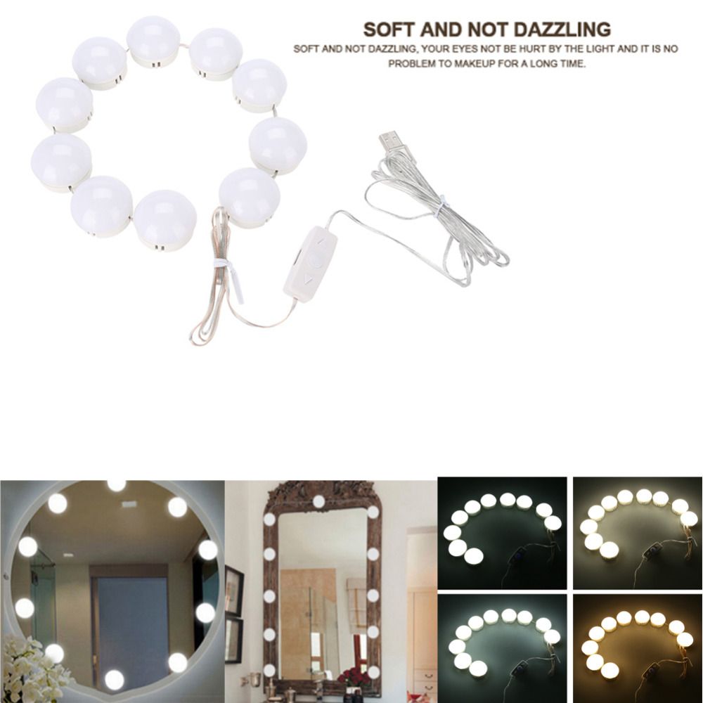 10 Bulbs Vanity Led Makeup Mirror Lights Bulb String Adjustable Warm Cold Tones Ebay