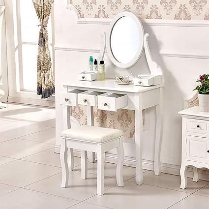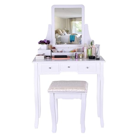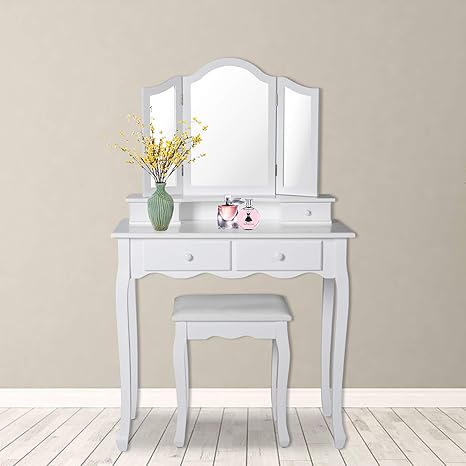 These chic vanities should have large mirrors to provide you with ample space to see your reflection. Giantex vanity dressing table set with stool and mirror flip top mirrored for makeup 9 mid organizers dual modern writing desks for home office bedroom contemporary vanity tables desk w 2 drawers. Mirror vanity makeup dressing table set with cushioned stool 4 storage drawers.
