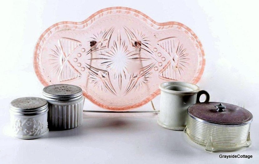 Antique Vanity Dresser Set Frosted Pink Glass Vanity Tray