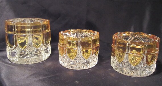 Antique Val Saint Lambert Set Crystal Vanity Set Prestigious Dressing Table 3 Powder Boxes Lidded Vsl Belgium