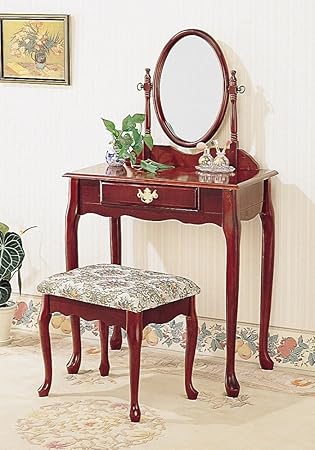Cherry Finish Vanity Set W Stool By Coaster Furniture