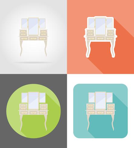 Vanity Table Old Retro Furniture Set Flat Icons Vector