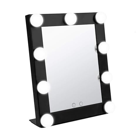 Geek House Portable Lighted Vanity Makeup Mirror Hollywood Style Cosmetic Tabletops With 9 X 3w Super Bright Dimmable Touch Control Led Bulbs Black