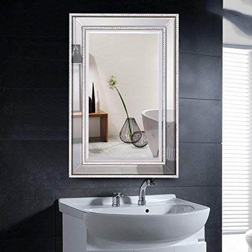 Amanti Art Mezzanine Antique Silver Bathroom Vanity Mirror