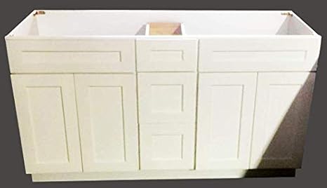 New White Shaker Double Sink Bathroom Vanity Base Cabinet 60 X 21 D Ws V6021d