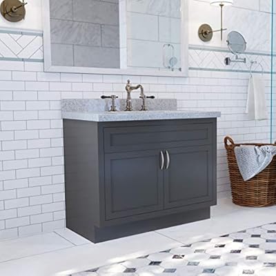 Cabinet Mania Cabinet Mania Gray Shaker 36 Bathroom Vanity Open Shelf With Marble Top From Houzz Martha Stewart