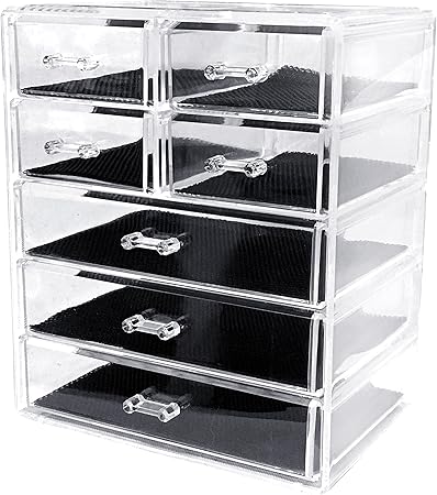 Sodynee Cosmetics Makeup And Jewelry Storage Organizer Case Display Boxes 3 Large And 4 Small Drawers
