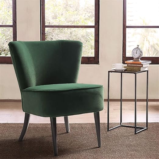 Emerald Green Small Armless Velvet Vanity Chair For Bedroom