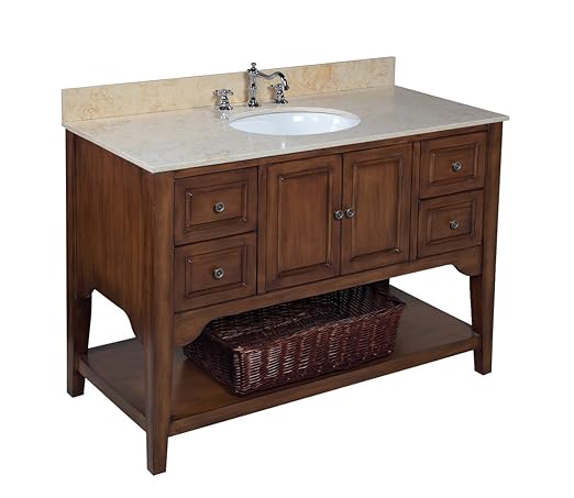 Washington 48 Inch Bathroom Vanity Travertine Brown Includes Brown Cabinet With Soft Close Drawers Travertine Countertop And White Ceramic Sink