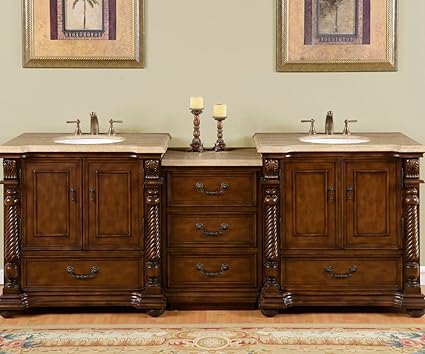 92 Double Sink Bathroom Vanity Travertine Stone Countertop