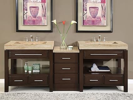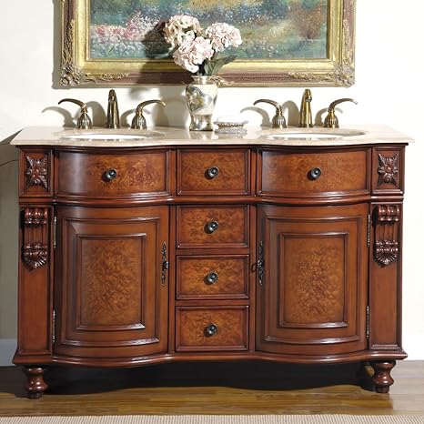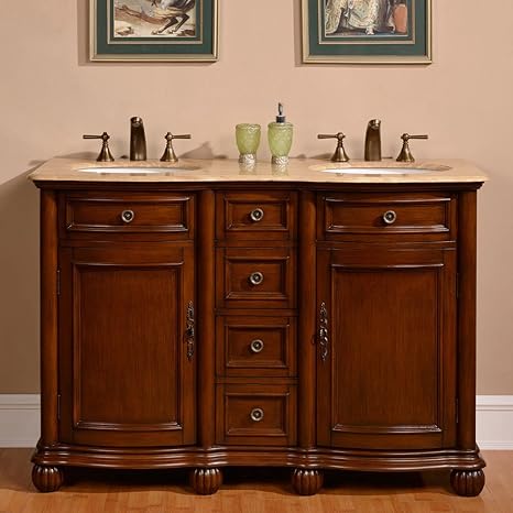 Silkroad Exclusive Jyp 0192 T Uic 55 Countertop Travertine Double Sink Bathroom Vanity With Furniture Cabinet 55 Medium Wood