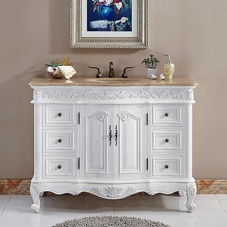 Silkroad Exclusive Hyp 0152 T Uic 48 Countertop Travertine Single Sink Bathroom Vanity With Cabinet 48 White