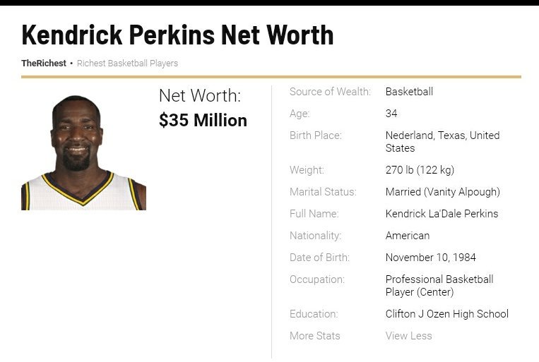 Kendrick Perkins Wife Age Height Salary Net Worth