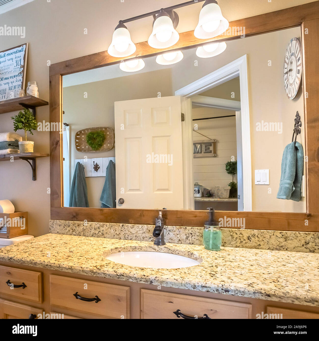 Frame Square Interior Of A Cozy And Well Lighted Bathroom