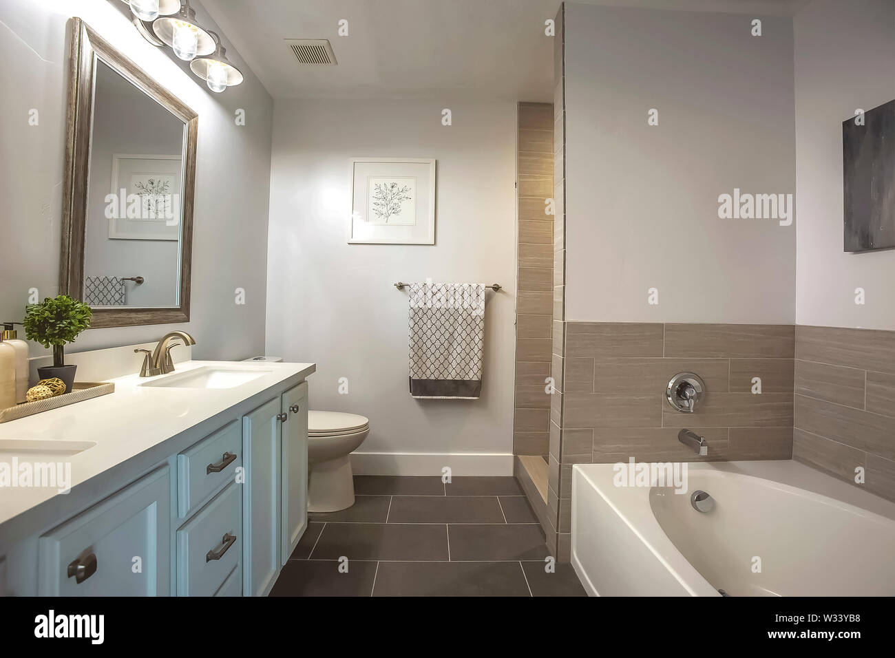 Beautiful Bathroom Interior Of A Home With Bathtub Vanity
