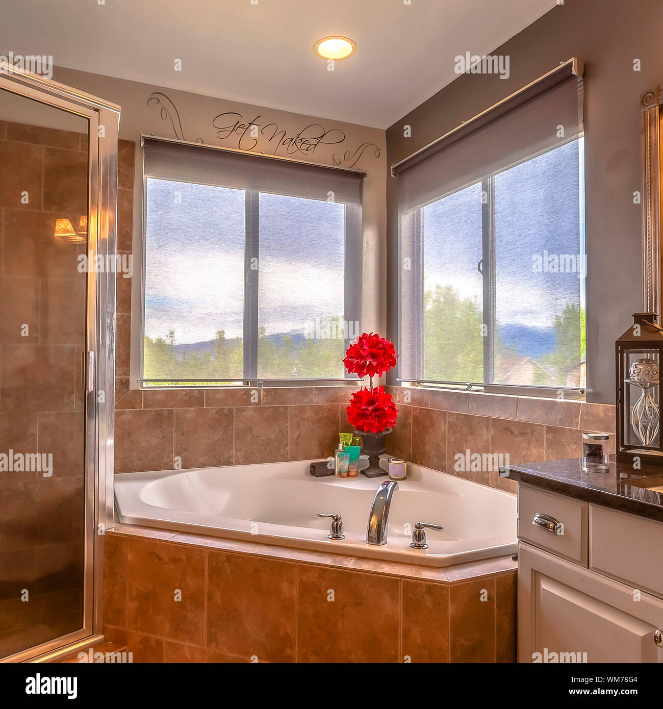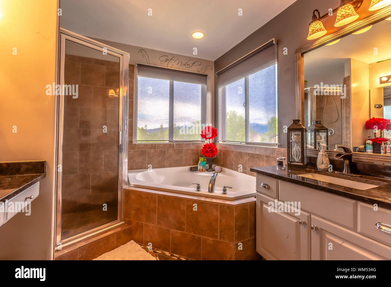 Panorama Frame Shower Stall Bathtub And Double Vanity Area