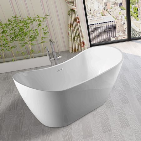 Vanity Art 59 Inch Free Standing White Acrylic Bathtub
